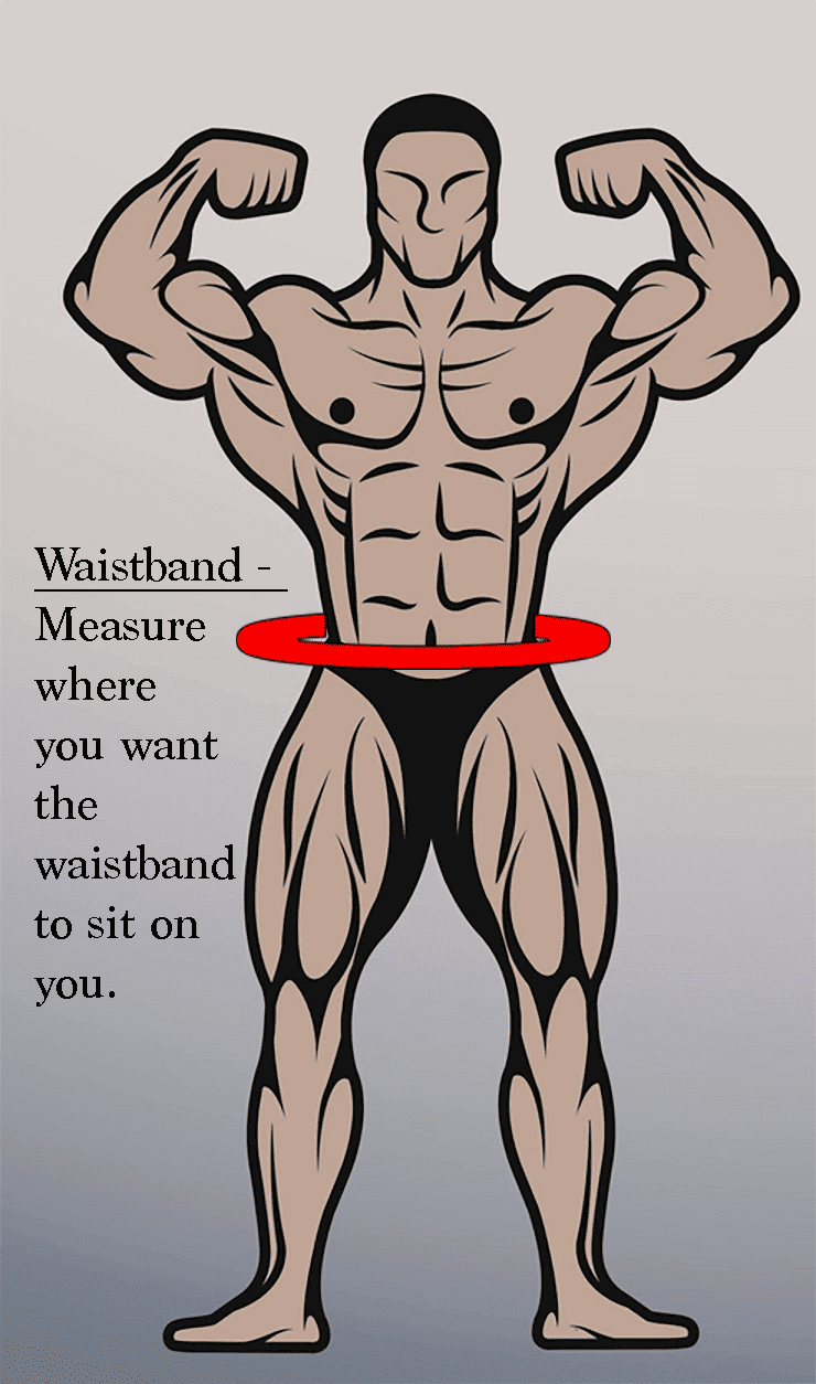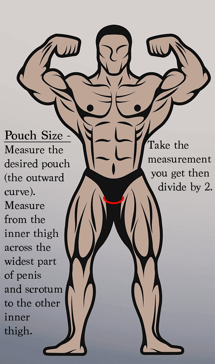 You will need to provide 4 measurements to complete your order - Waistband, Front height, Pouch and Rear height. (Make sure you provide all measurements naked, do not measure with underwear/posers on):